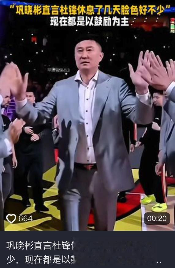 非常有意思的是,在最近的几场比赛巩晓彬在担任解说的时候,还特意调侃了杜锋。他说杜锋休息好之后,这几天都是以鼓励方式为主,变得温文尔雅了。其实巩晓彬这番大实话也说出了很多球迷的心声。希望他能够继续保持下去,争取以更加温柔的方式带领广东队这一支球队在本赛季去冲击季后赛,也许会有意想不到的收获。