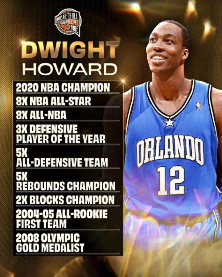 霍华德正式入选名人堂,NBA生涯取得的荣誉有2020年总冠军、8次全明星、8次最佳阵容、3次DPOY、5次最佳防守阵容、5次篮板王、2次盖帽王,以及08年北京奥运会金牌等等。