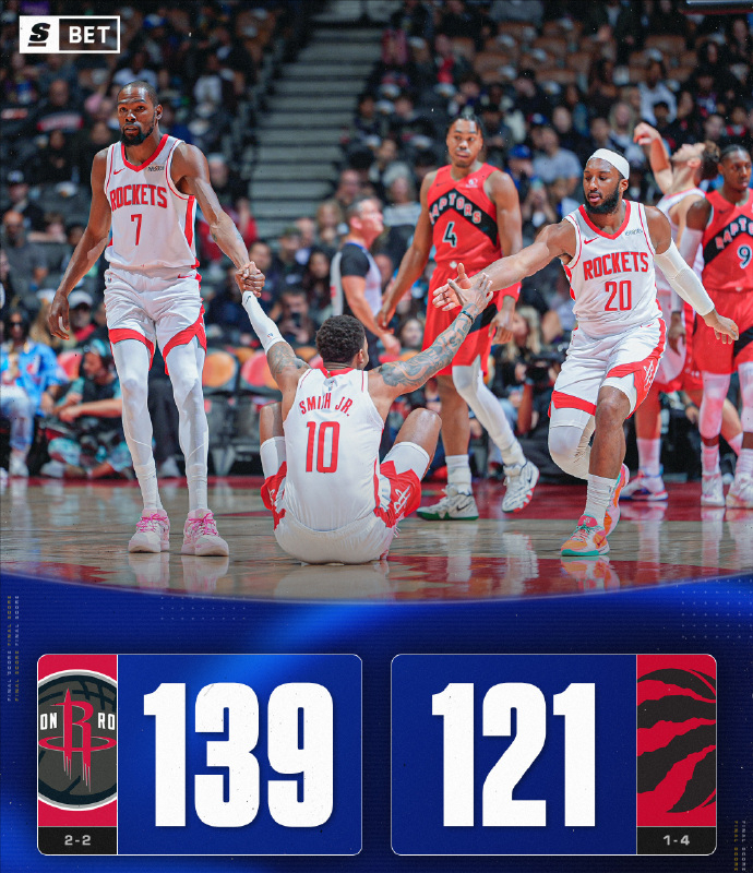 在上一场以137-109大胜篮网之后,火箭今天又以139-121战胜猛龙,取得两连胜,同时送给猛龙4连败。火箭队连续两场得到至少137分,还拿到两连胜。这是他们自1973年后,50多年来首次做到这一点。