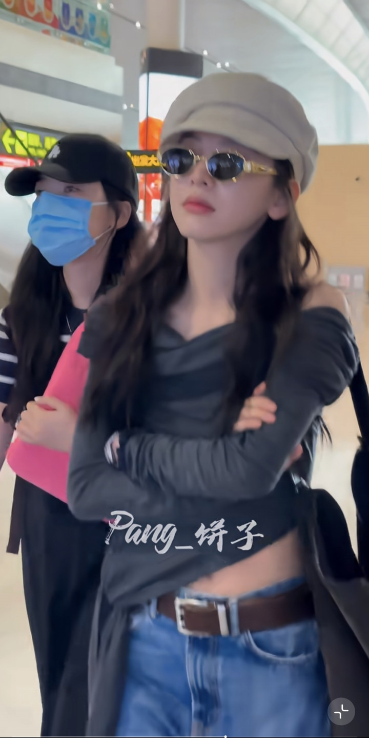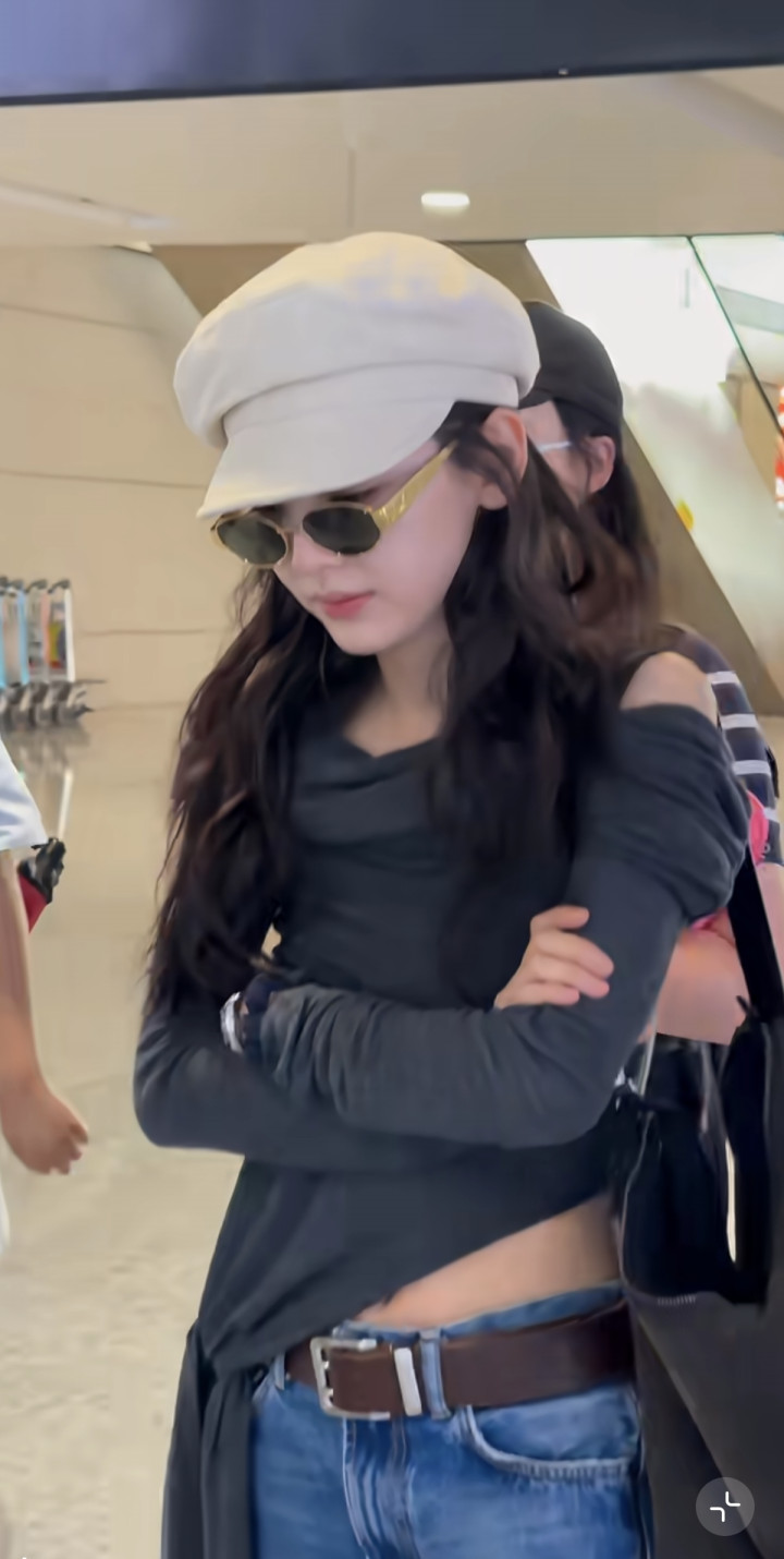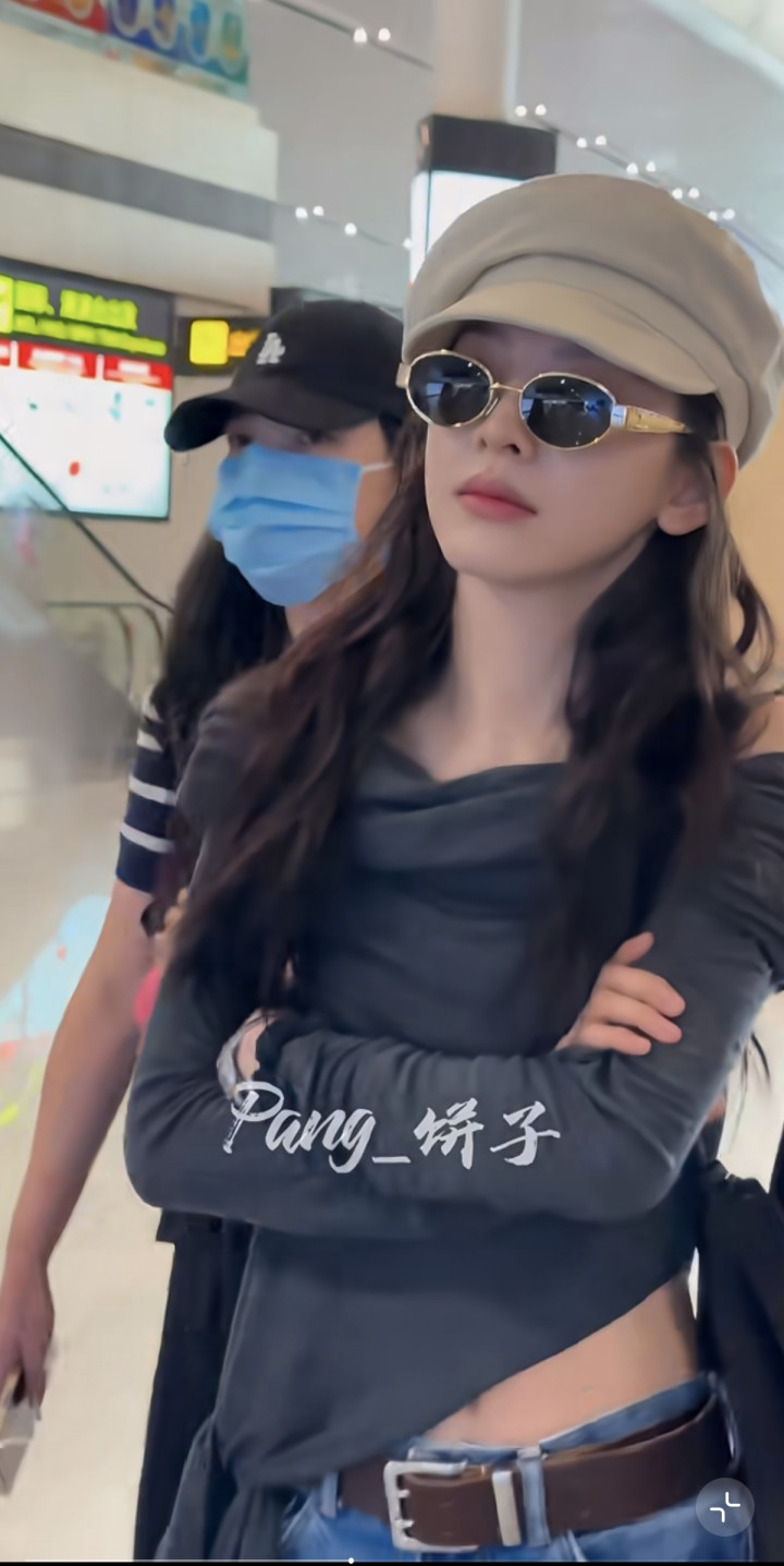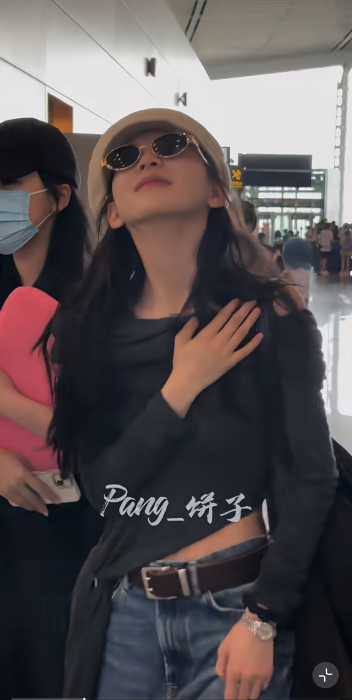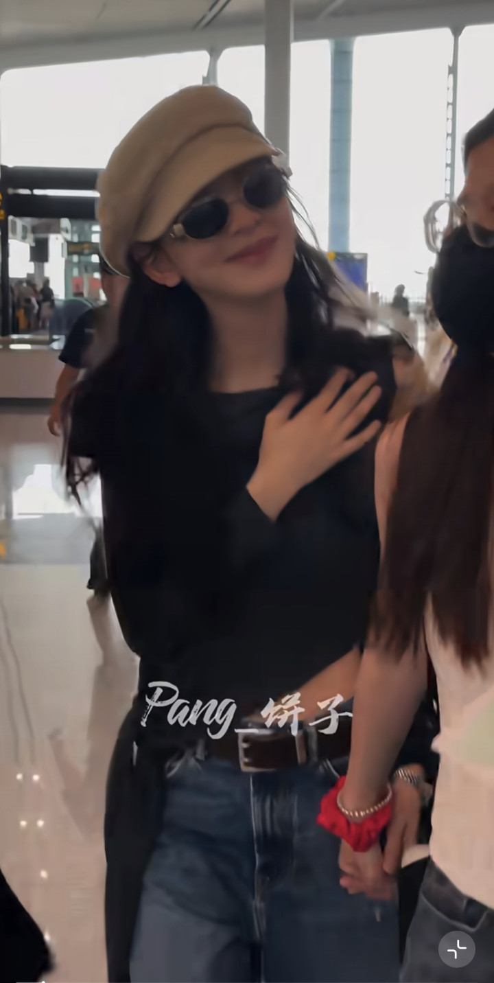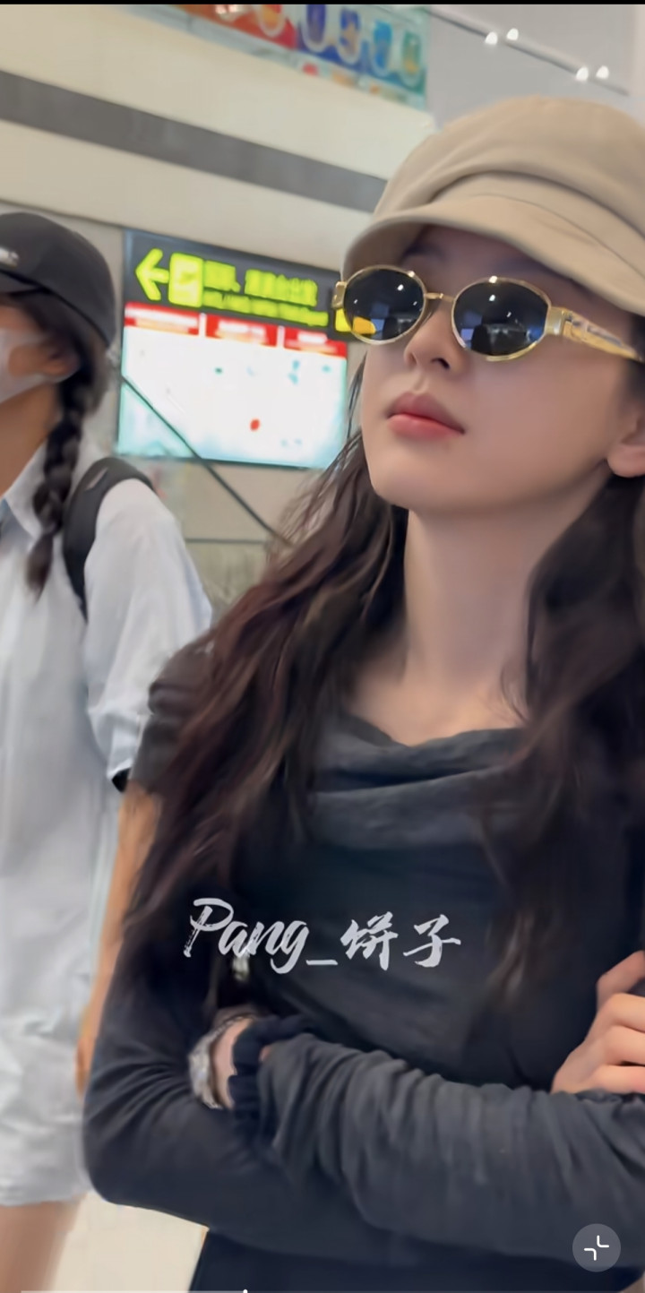 章若楠今日机场路透, 露肩长袖贝雷帽墨镜, 真又酷又飒好会穿呀!
