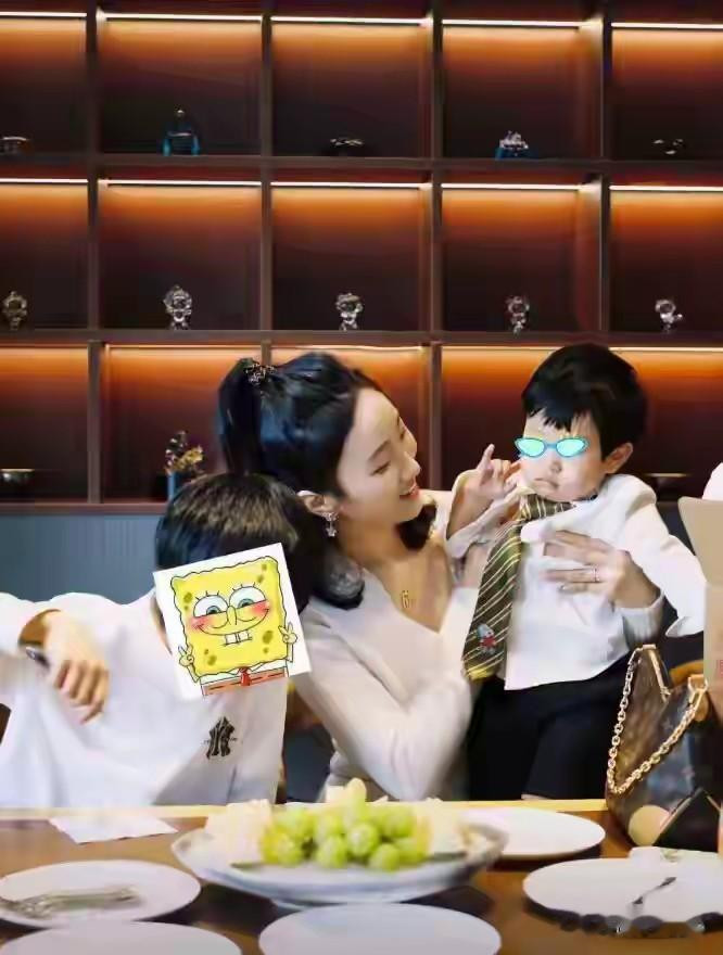小海绵和弟弟也有同框,两个小朋友发型确实挺像,父母都好看,相信小海绵也是帅哥一枚。